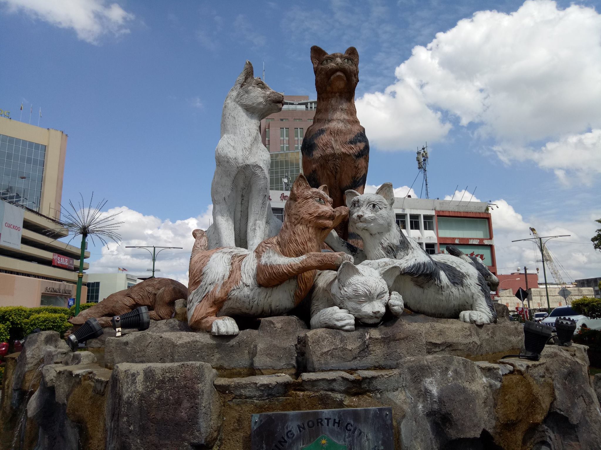 Ankunft am Morgen und die erste Hürde ist dann die Bushaltestelle zu finden. Einheimische haben Mitleid mit uns, halten am Strassenrand an und nehmen uns mit in die Stadt rein. Wir unterhalten uns als würden wir uns schon Jahre kennen und ich spüre bei all der gewohnten malayischen Freundlichkeit und Herzlichkeit ist hier noch etwas anders. Ich finde noch keine Worte dafür aber es ist ein erstes Gefühl, dem ich mich hingebe. Wir lassen uns zur Kuching Waterfront bringen und schauen dann nach einer Bleibe. Schnell und nach einigen Verhandlungen auch günstig gefunden. Auf gehts. Die Umgebung will erkundet werden. Hatte ich erwähnt, dass Kuching auch Cat City genannt wird? Im späteren Verlauf erfahren wir eine ganz banale Erklärung dazu. Kuching ist das malayische Wort für Katze. Dem Namen aller Ehre gemacht, findest du hier riesige Katzenstatuen und das einzige Katzenmuseum weltweit.