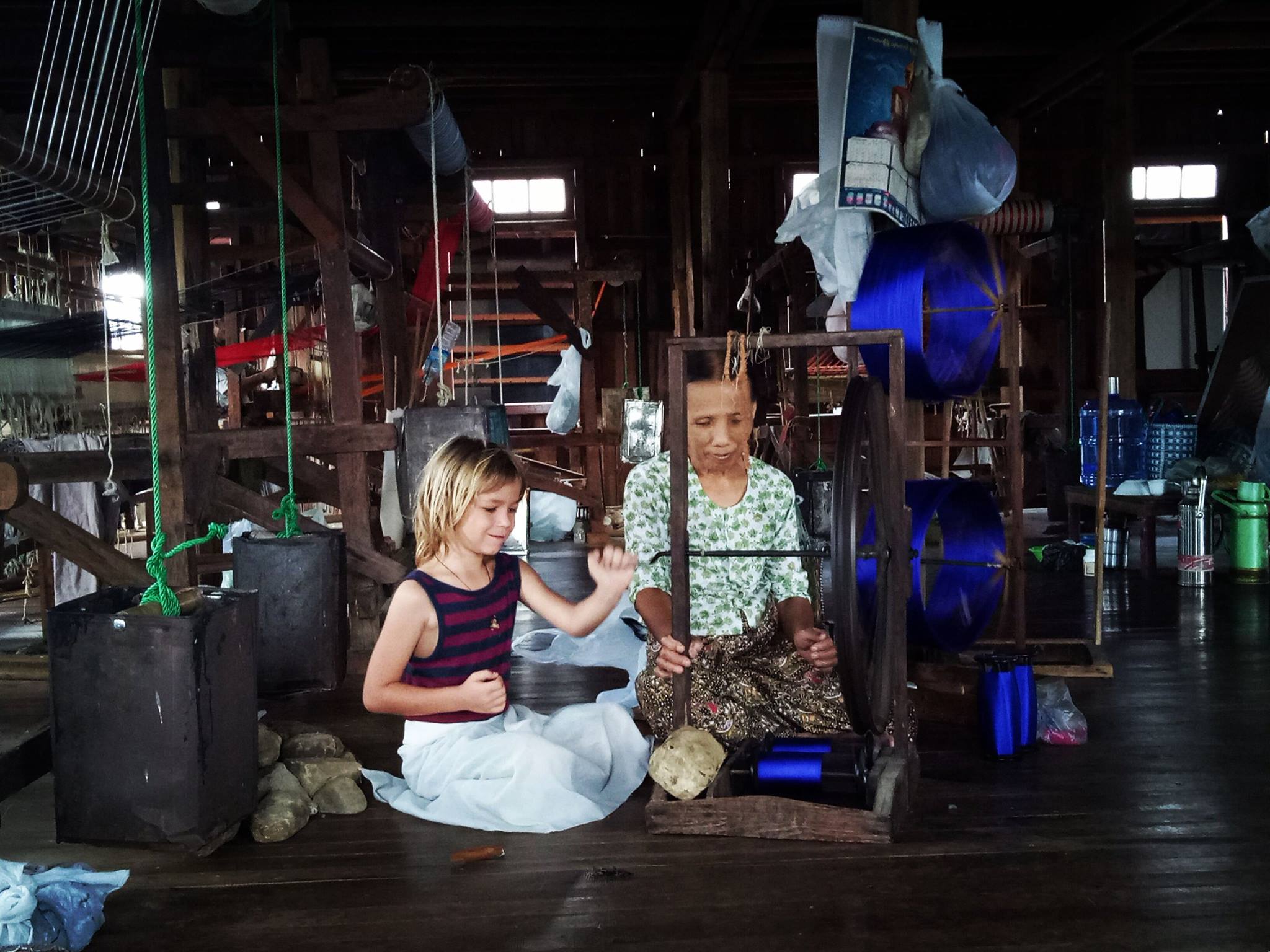 Nachdem Mittagessen holt uns ein Boot zur touristischen Tour ab und auch wenn wir durchweg gute Erfahrungen machen, empfand ich diese Tour als sehr kommerziell ausgelegt. Es geht durch Lotuswebereien, zu traditionellen Bootsmachern und den Zigarrenmanufakturen aber spätestens als wir in eine Weberei mit drei Langhalsfrauen kommen, erkenne ich die Misere an dieser Tour. Alle Stationen wollen einen Absatz am Souveniermarkt haben.