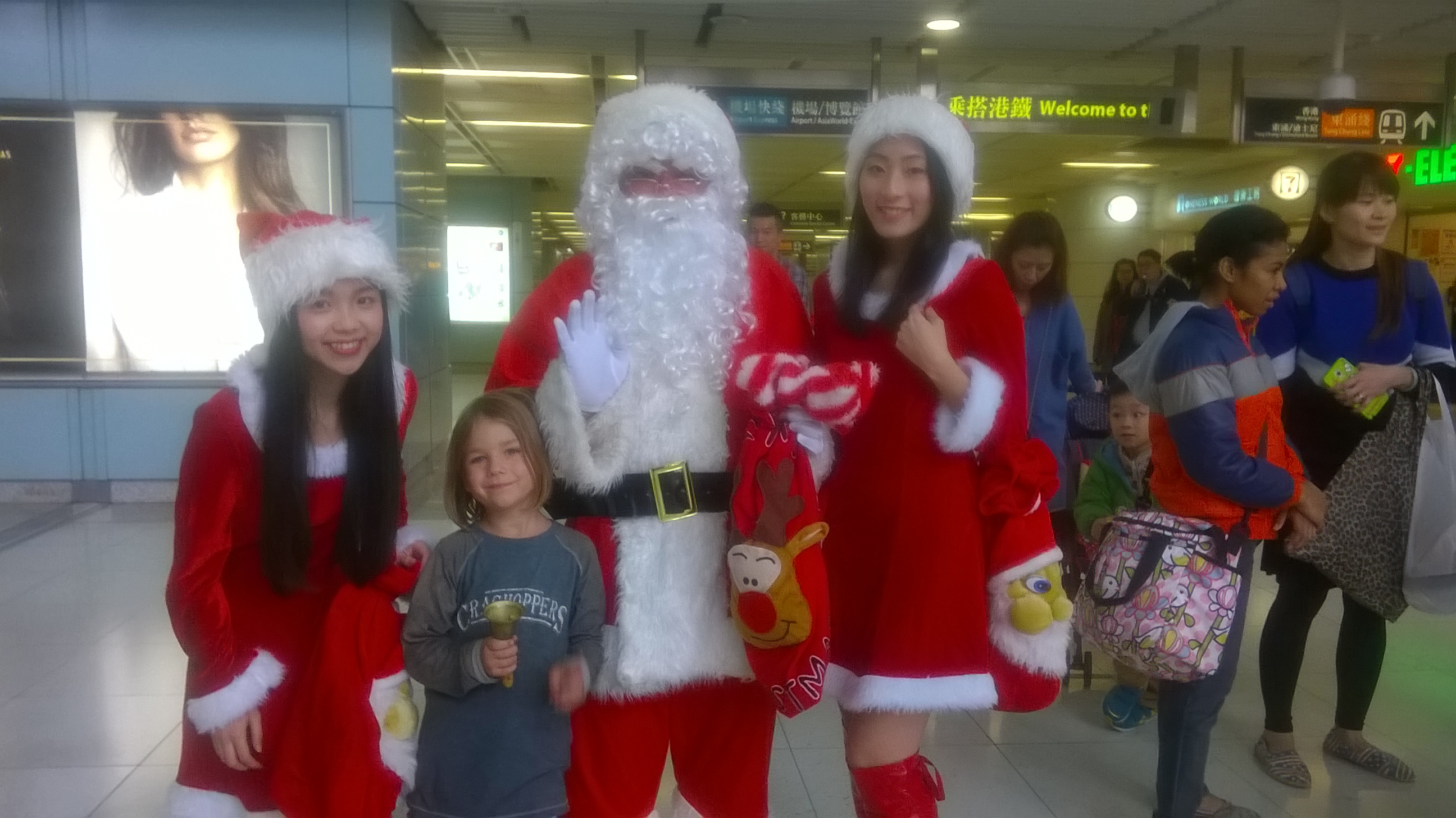 Über Weihnachten in Hong Kong bedeutet leider auch, irgendwie allein zu sein, denn zu Weihnachten eine Couchsurfinggelegenheit in einer Metropole wie Hong Kong zu bekommen, ist schier unmöglich. Auch die meisten Guestehouses und Hotels sind restlos ausgebucht, am Ende landen wir in einem Hotelkomplex am Containerhafen, weit ab von allem. Interessant ist aber, dass genau dieser Containerhafen auch Container aus Hamburg, meiner Heimatstadt beherbergt und mir somit ein vertrautes Gefühl vermittelt. Die Infrastruktur in Hong Kong ist aber nahezu perfekt und man kommt von überall in die Stadt rein. Die Weihnachtsstimmung ist allgegenwärtig, Girlanden, Christbaumkugeln und jede Menge Weihnachtsmusik auch auf den Strassen. Das berühmte Sohoviertel ist voll mit Weihnachtsdeko und die Shoppingmalls, die quasi an jeder MTR Station angeschlossen sind, haben Hochkonjunktur. Kurzum, Hong Kong steht dem westlichen Weihnachtstrubel in nichts nach. Heiligabend gehts ins Disneyland Hong Kong und damit auch unser erster Besuch jemals in ein Disneyland, wir sind ganz schön aufgeregt. Ich kaufe ein Zwei-Tagestickt, da ich mich dazu entschieden habe, den zweiten Tag Disneyland als Weihnachtsgeschenk zu verpacken. Und mal im Ernst, was verschenkt man denn auf einer Weltreise? Der Wunschzettel sah eine Angel, ein Smartphone oder einen Roller vor…..kurz überlegt und Nein, das geht nicht, denn niemand von uns hat Lust, genau diese Teile zu schleppen und ein Smartphone für einen Fünfjährigen? Wirklich nicht.