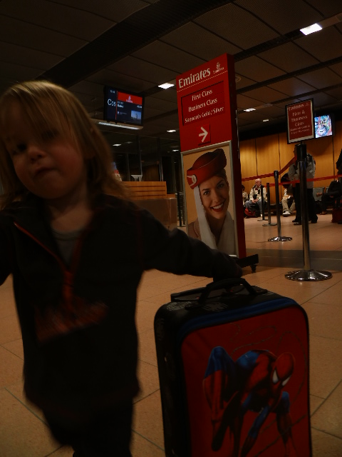 Wohoo, ich hab es getan, ich habe den Flug für 600 Euro pro Nase nach Thailand und zurück mit Emirates gebucht, 4 Wochen Urlaub, reisen, fühlen, spüren, schmecken und erleben, liegen vor uns. Aber was nimmt man eigentlich mit in die Tropen mit Kleinkind? Ein Rucksack, ein Kind und sein Köfferchen und ein Liegebuggy 🙂 Impfungen? Nur die üblichen, Tollwutimpfung war aus, ausgerechnet die, die mir irgendwie wichtig war, aber die Ärztin beruhigt mich, Thailand ist gut strukturiert, so dass wir es bei Gefahr immer innerhalb von 24 Stunden zur nächsten Krankenstation schaffen. Malariaprophylaxe? Nicht nötig und wenn doch, vor Ort erhältlich. Reiseapotheke? Hm,schwierig. Ein kleines Erste-Hilfe-Täschchen, zwei Fieberzäpfchen, ein paar Globulis wie Arnika und Apis und sonst nix. Welche Kleidung? Keine Ahnung, denn ich war noch nie dort. Ich packe jeden eine lange Hose, zwei kurze Hosen, ein langes Shirt und zwei kurze Shirts ein, dazu 4 Sätze Unterwäsche, ein paar Socken gegen die Kälte der Klimaanlagen, Badezeug, Antibrumm, Sonnenbrille und Sonnencreme. Schätze die Hälfte hab ich nun vergessen, weil ich mal wieder, überspitzt gesagt, eine halbe Stunde vor Abflug gepackt habe und wie sollte es anders sein, natürlich noch gearbeitet habe, man liebt schließlich das Extrem 😉 Mit dem letzten Saft der ausgelutschten Autobatterie geht es zu einer Freundin, die uns zum Flieger bringt und mir noch dringend unsere E-Tickets ausdrucken muss. Der Satz”das hättest du auch ruhig mal früher machen können”, liegt mir noch eine Weile in den Ohren und na klar, sie hat vollkommen recht, sowas geht nicht immer gut und irgendwann kommt bestimmt auch mal der Tag, wo ich es nicht mehr schaffe, aber diesmal geht es gut. Mit Emirates haben wir uns auch mal richtig Luxus gebucht, aber für Kinder ist das eh unwichtig, denn die wollen spielen, tanzen, lachen und sich bewegen und vor allem stolz den eigenen Koffer presentieren.