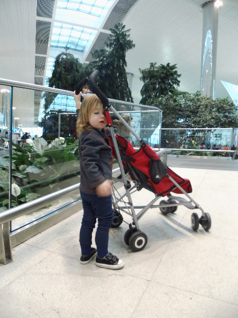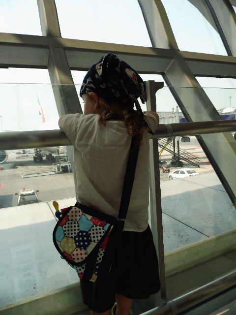 Wir haben einen Stopover in Dubai für 4 Stunden, zu kurz für das Verlassen des Flughafens, aber auch zu lang für das Programm innerhalb des Geländes. Jannik schläft noch in der Karre und ich mache das, was ich am allerliebsten mache, Leute beobachten 😉