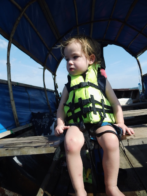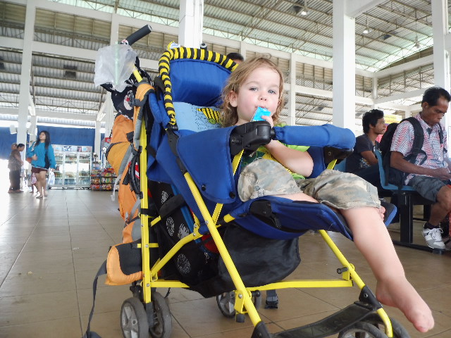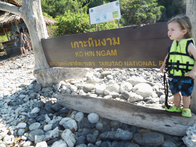 Es fällt mir sehr schwer, diese tollen Menschen zu verlassen, aber der Flug in den Süden war schon im Vorwege für 30 Euro pro Nase nach Hat Yai gebucht. Von dort aus geht es weiter mit dem Airportshuttle zum zentralen Busbahnhof für 100 Baht (2,80) und dann weiter mit dem Van nach Satun für 200 Baht (5,60). Die Fahrt ist anstrengend und ich bin sehr froh, dass ich den Stopover für eine Nacht in Satun eingeplant habe. Wir werden sofort von Rollerfahrern in Satun genötigt sie als Taxi zu nutzen und als sie schon fast das ganze Gepäck aufgeladen haben und ich völlig überfordert mit Jannik da stehe, erhalte ich den befreienden Winker vom 50 Meter entfernten Minibus-Fahrer und schnappe mir unser Gepäck zurück. In der kleinen Bungalowanlage gibt es leider niemanden, der der englischen Sprache mächtig ist und ich überlege wie ich den Hotelangestellten verklickere, dass ich am nächsten Morgen nach Pak Bara muss, von wo aus unser Speedboot nach Koh Lipe geht. Nach ein paar wilden Gerstikulierungen, Zeichnungen und dem Zeigefinger auf meiner Touristenkarte gelingt es mir dann und ich hoffe an dieser Stelle, dass am nächsten Morgen ein TukTuk Fahrer am Eingang auf uns wartet. Wir verbringen den restlichen Nachmittag in dem kleinen Dorf mit Schlendern und Staunen und stellen schnell fest wie exotisch wir hier sind, denn die Leute kommen aus ihren Häusern heraus, zeigen mit Fingern auf uns, treten näher, streicheln Jannik übern Kopf und schießen Fotos. Man muss dazu sagen, diese natürliche Scham, fremde Menschen anzustarren, ist hier weniger present als in den westlichen Ländern. Man hat mich im Vorwege davor gewarnt, dass besonders blonde Kinder hier fast den gleichen Stellenwert haben wie Buddha und es gibt so gar Gerüchte, es bringe einer Schwangeren Glück, wenn sie ein blondes Kind anfässt. Jannik genießt die Aufmerksamkeit noch, was sich im späteren Reiseverlauf zunehmend ändert.