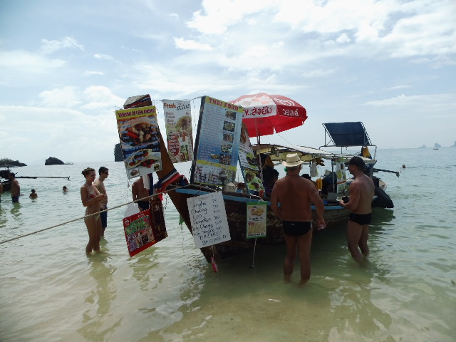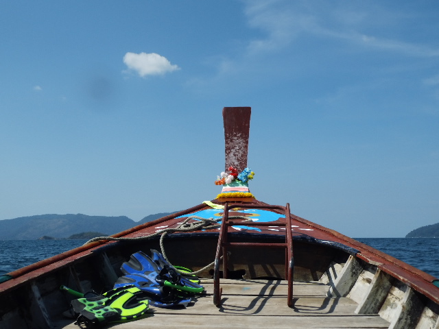 Am nächsten Tag bin ich sehr überrascht über die gute Infrastruktur, auch wenn ich zwischendurch das Gefühl habe, irgendwo abgeladen worden zu sein, landen wir gegen Mittag am Hafen von Pak Bara, essen noch einen Happen in der Garküche am Straßenrand, bevor es mit Routen-Aufklebern versehen, für 450 Baht (11 Euro) nach Koh Lipe geht.