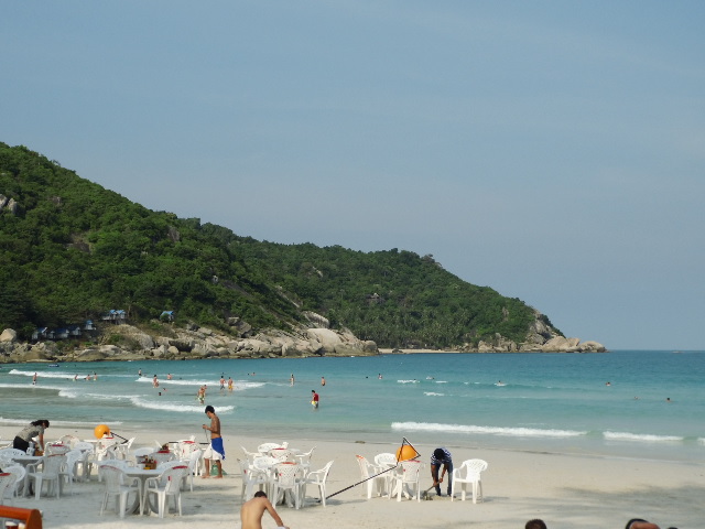 Unsere Route zieht uns weiter nach Koh Phangan, wo die legendären Full Moon Parties statt finden. Wir haben schon im Vorwege eine Unterkunft gebucht, da wir kurz vor Vollmond hier sind und das langsam anreisende Partyvolk die Insel belagert. Am Nachmittag am Strand realisiere ich das erste Mal, welch ein Aufgebot hier wohl am Abend sein muss. Es werden Eimer wie auf Mallorca raus gestellt, meterlange Shots und die harten Getränke gibt es auch gleich in großen Flaschen zu kaufen, und das in jedem Souvenirshop.