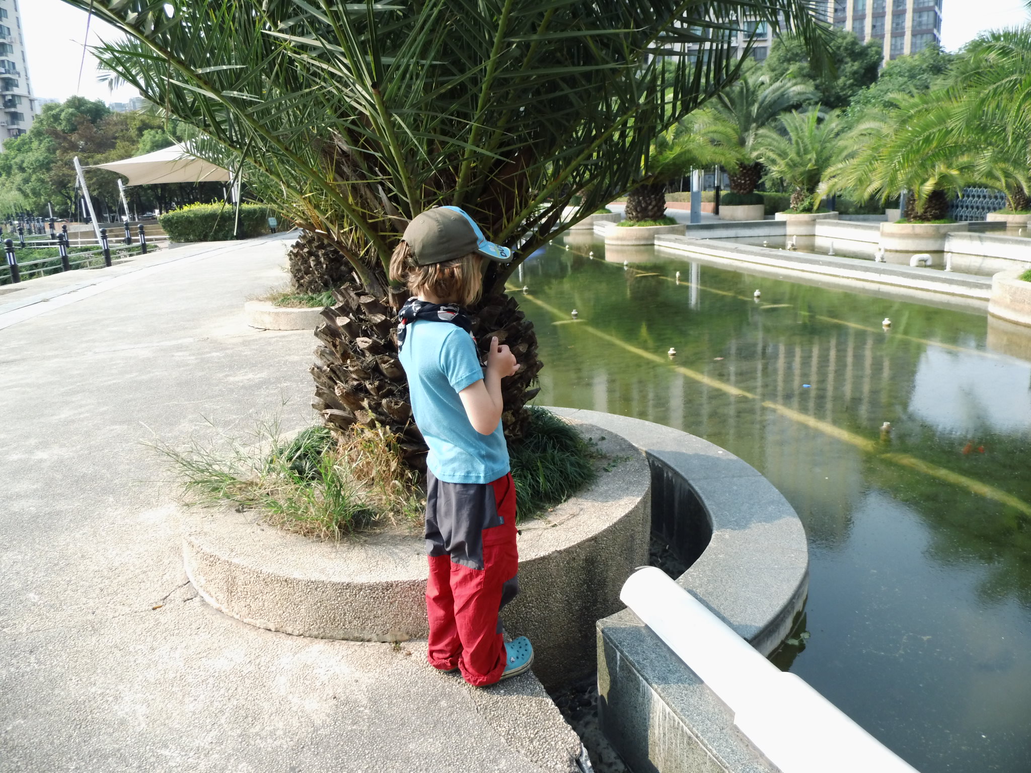 Nachdem wir uns den ersten Tag in Shanghai wirklich nur von der langen und kräftezerrenden Zugfahrt erholen, was für mich eine größere Notwendigkeit zu sein scheint als für Jannik und den späten Nachmittag im nahegelegen Park auf dem Spielplatz verbringen, starten wir den nächsten Tag mit dem Ausflug in die Innenstadt und an die Uferpromenade von Shanghai. Ich genieße hier in erster Linie die breiten Fußgängerwege und die deutlich wenigeren Motorroller auf den selbigen, die einen vorbei hupen. Ich entscheide mich für ein Luxusprogramm und wir gehen das erste Mal in China in ein Restaurant, aber nein, es gibt nicht chinesisch, sondern italienisch auf Janniks Wunsch. Pasta von einem chinesischen Koch zubereitet, bleibt aber am Ende irgendwie chinesisch. Aber egal, Jannik genießt seine Spezialpizza. Wir laufen den ganzen Tag über wieder gefühlte 15 km und die Füße schmerzen. Der nächste Tag geht in den Peoples Square Park in Shanghai, eigentich auf der Suche nach dem Spielplatz, der mir vom Hotellier empfohlen wurde, aber ich stelle fest, was er als Spielplatz empfindet, entpuppt sich als kleinen kommerziellen Attraktionspark für Kinder mit etwa 7 Fahrgeschäften. Jannik ist entzückt und ich zähle schonmal unser restliches Geld. Es fällt schwer, ihm den Wunsch nach einem Fahrgeschäft auszuschlagen und so einigen wir uns auf drei Stück und ein Paket Seifenblasen, das ist ein wirklich fairer Kompromiss. Ich mache eine Entdeckung, die mich erschaudern lässt. Kennst du das Entenangeln auf den Jahrmärkten? In China, hier in Shanghai scheint es eine abgewandelte Form davon zu geben, nur dass du hier Goldfische angelst, diese sind aber keinesfalls aus Plastik, sondern lebendig. In einem kleinen Pool schwimmen diese armen Tierchen nun und schnappen nach den Brotkrumen, die ihnen ins Wasser gehalten werden. Dass sie am Ende am Haken hängen, ändert ihr Schicksal nur verschwindend gering. Der Clu an der Sache ist, du darfst jeden selbst geangelten Fisch mit nach Hause nehmen, entweder in einer käuflich zu erwerbenden Plastikbox oder ganz einfach so in der Plastiktüte. Jannik möchte schon seit Monaten das Angeln erlernen und wittert hier sofort seine Chance, sein Verständnis für die missliche Lage ist nicht sonderlich ausgeprägt und ich erkläre ihm, dass Angeln nach wie vor aus einem Überlebensinstinkt heraus geschehen sollte und nicht aus Spaß. Natürlich würde er liebend gern einen solchen Fisch mit ins Hotel und auch auf unsere weitere Reise nehmen. Am Ende versteht er aber meine Bedenken und beginnt Mitleid für die armen Tiere zu bekommen.