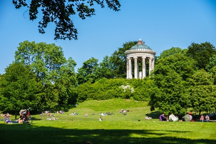 Wer genug hat von Spielplätzen muss zum Englischen Garten, dem größten, mitten in der Stadt gelegenen Park Münchens. Auch hier hat man zwar verschiedene Spielplätze, aber man kann einfach daran vorbei radeln und im Kleinhesseloher See Enten und Gänse füttern. Wer mit dem Fahrrad unterwegs ist, hier geht es zu einer Mietstation, kann die vielen Menschen hinter sich lassen, und den ruhigen Teil des Gartens, nördlich vom mittleren Ring, besuchen. In der Nähe des Flusses Isar, mit einer Picknickdecke und einem Picknick dabei, haben wir schon viele schöne Nachmittage verbracht. Und ab und zu fahren wir auch bei den Surfern vorbei und schauen mit offenem Mund, wie sie sich auf die Wellen des Eisbachs wagen.