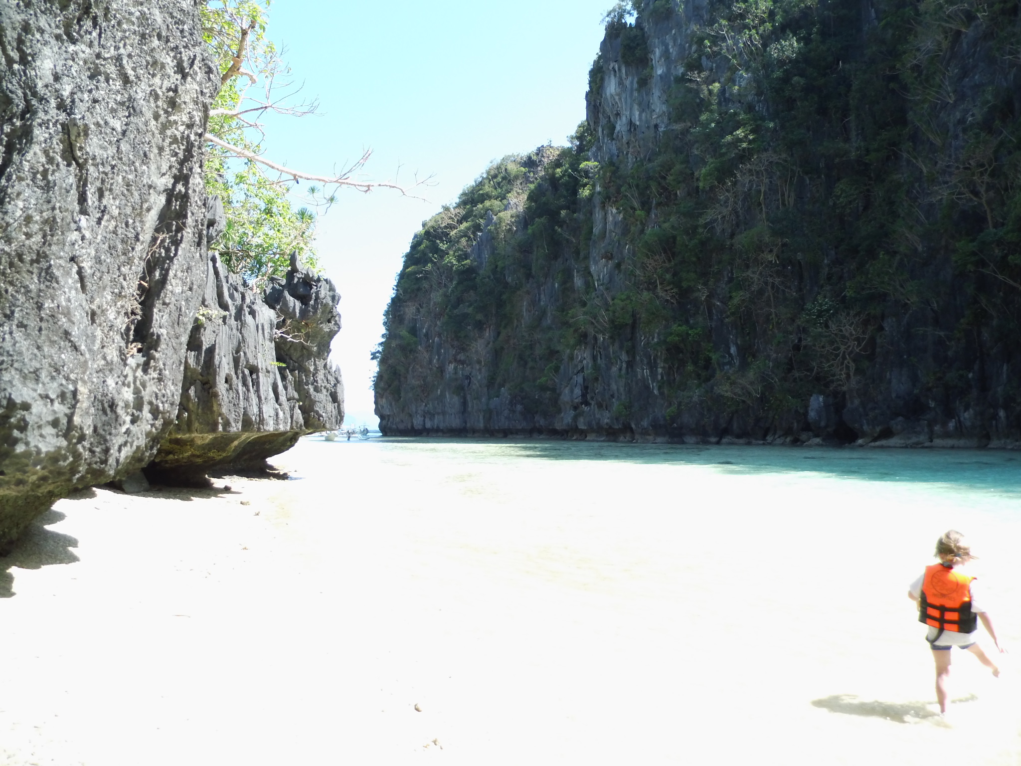 Der nächste Tag in Nacpan Beach, die Fahrt dauert eine Stunde mit dem Jeepney durch die kleinen Dörfer für gerade mal 50 Cent, ist ein absoluter Traum. Ich kann das Gefühl gar nicht in Worte fassen, der weite Strand, die wenigen Menschen, zwei kleine bettelnde Kinder, die uns am Strand etwas bezauberndes vorsingen, das ich nicht verstehe, eine einheimische Familie, die die wenigen Gäste mit Mittag versorgt, ein schwedisches Pärchen auf Weltreise mit dem wir uns anfreunden, die Palmen, das Meeresrauschen,einfach alles ist perfekt und ich habe das erste Mal in meinem Leben das Gefühl, hier bleiben zu wollen bis zu dem Zeitpunkt als ich die kleinen Teufel in Form von Sandfliegen kennen lerne. Jannik mag die kleinen Biester auch nicht sonderlich. Wer weiß wieviele Kinder die schon auf den Philippinen gebissen haben 🙁
