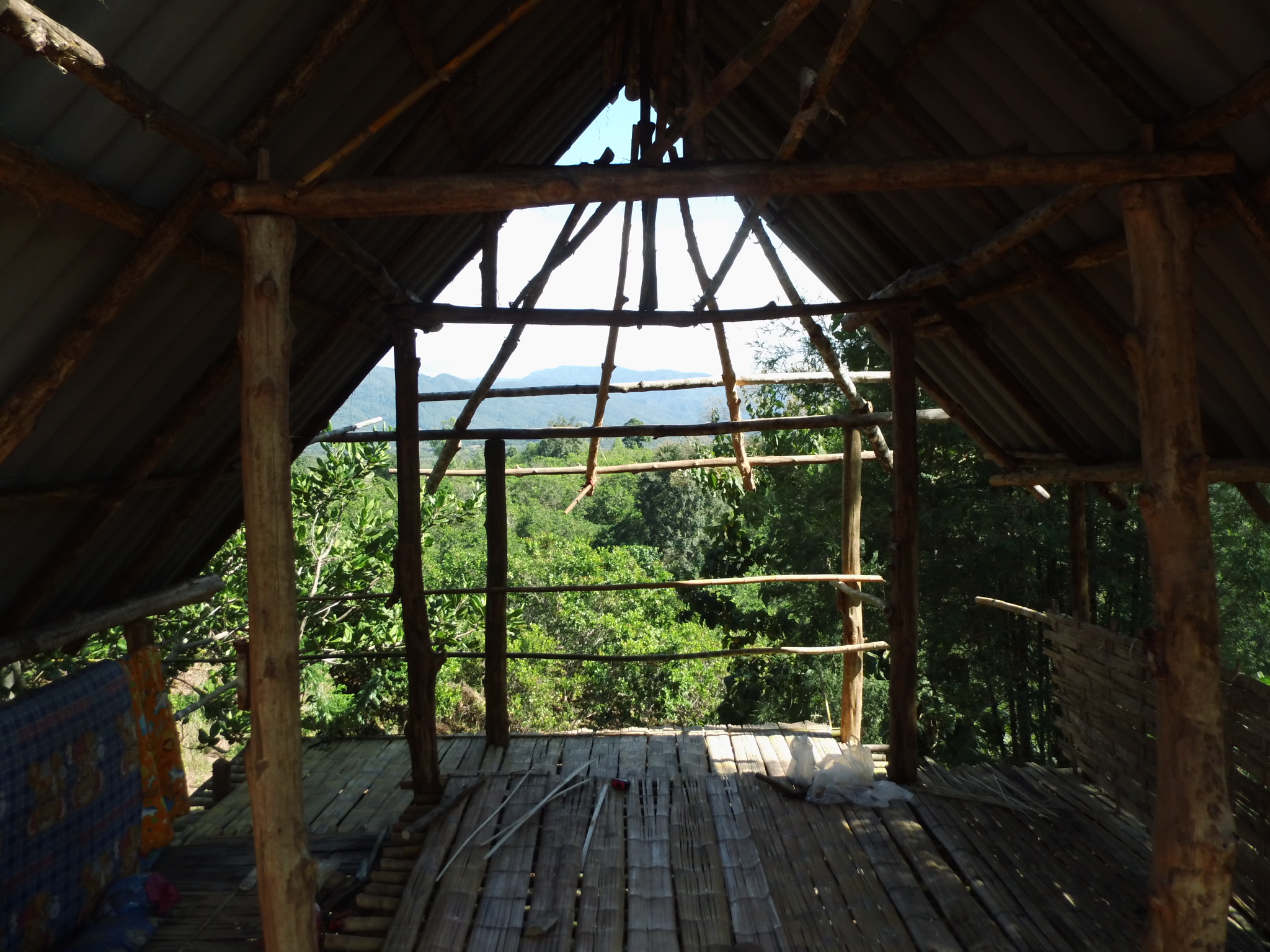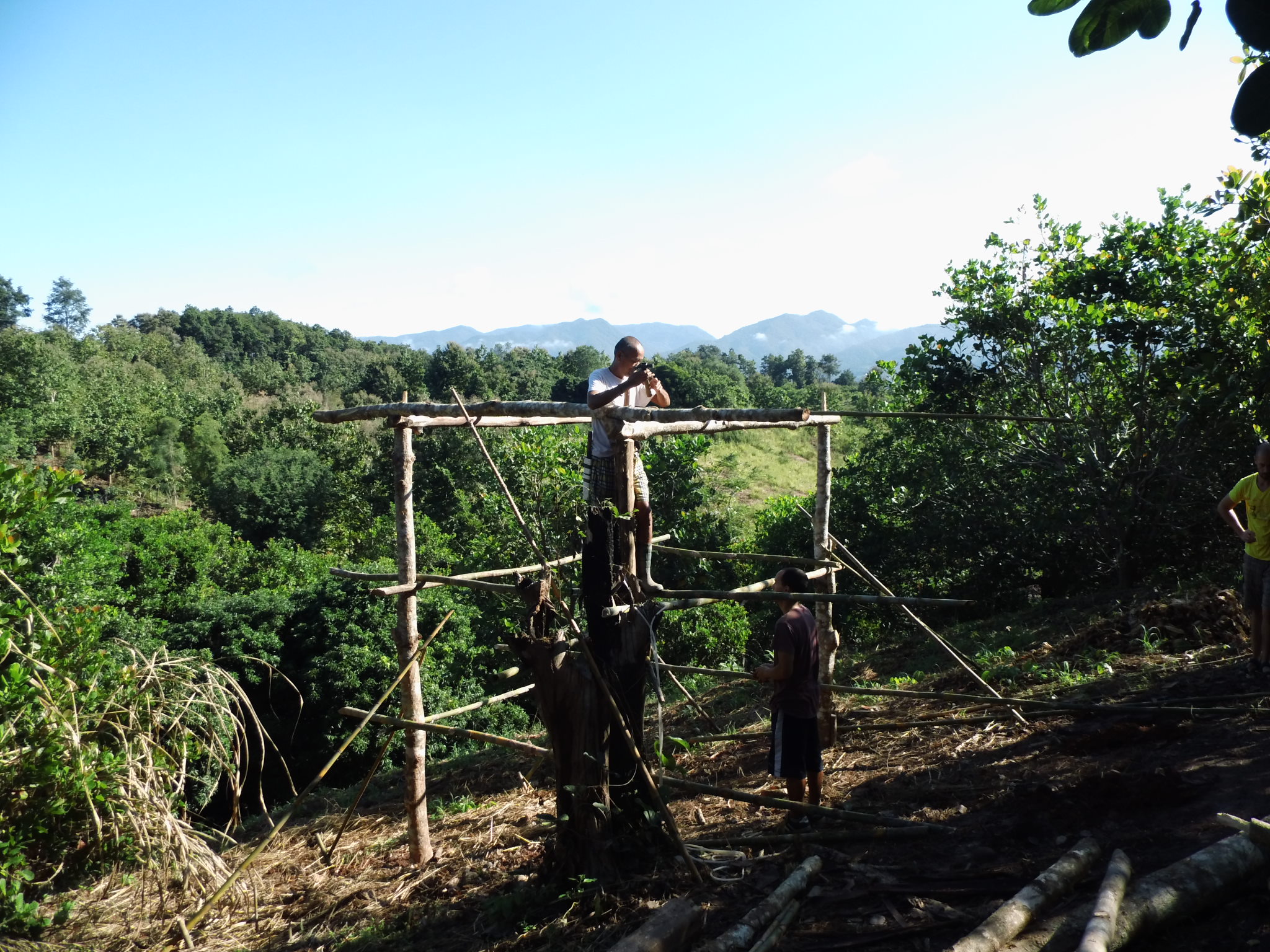 Wer ein solches Projekt noch in den Kinderschuhen besucht, kann oft gestalterisch mitwirken. Ein neues Haus entsteht und wir dürfen dran teilnehmen, sind bei dem ersten Grundstein/Grundbambus dabei und beobachten die Arbeiten. Nach einigen Tagen hat sich für mich das Kochen der Mahlzeiten, sowie das Wässern der Gärten und die Küchenorganisation als gut lösbare Aufgabe entwickelt mit Jannik. Wir beobachten also den Hausbau und ich genieße die Zeit, in der Jannik auf eigenen Wegen unterwegs ist, um den Leuten beim Haus zu helfen oder mit Sandot auf dem Roller in die Ortschaft zu fahren. Ich merke auf jeden Fall, dass es für uns beide sehr wichtig ist, getrennte Aktivitäten zu starten und während er unterwegs ist, übe ich mich ein wenig in Meditation.