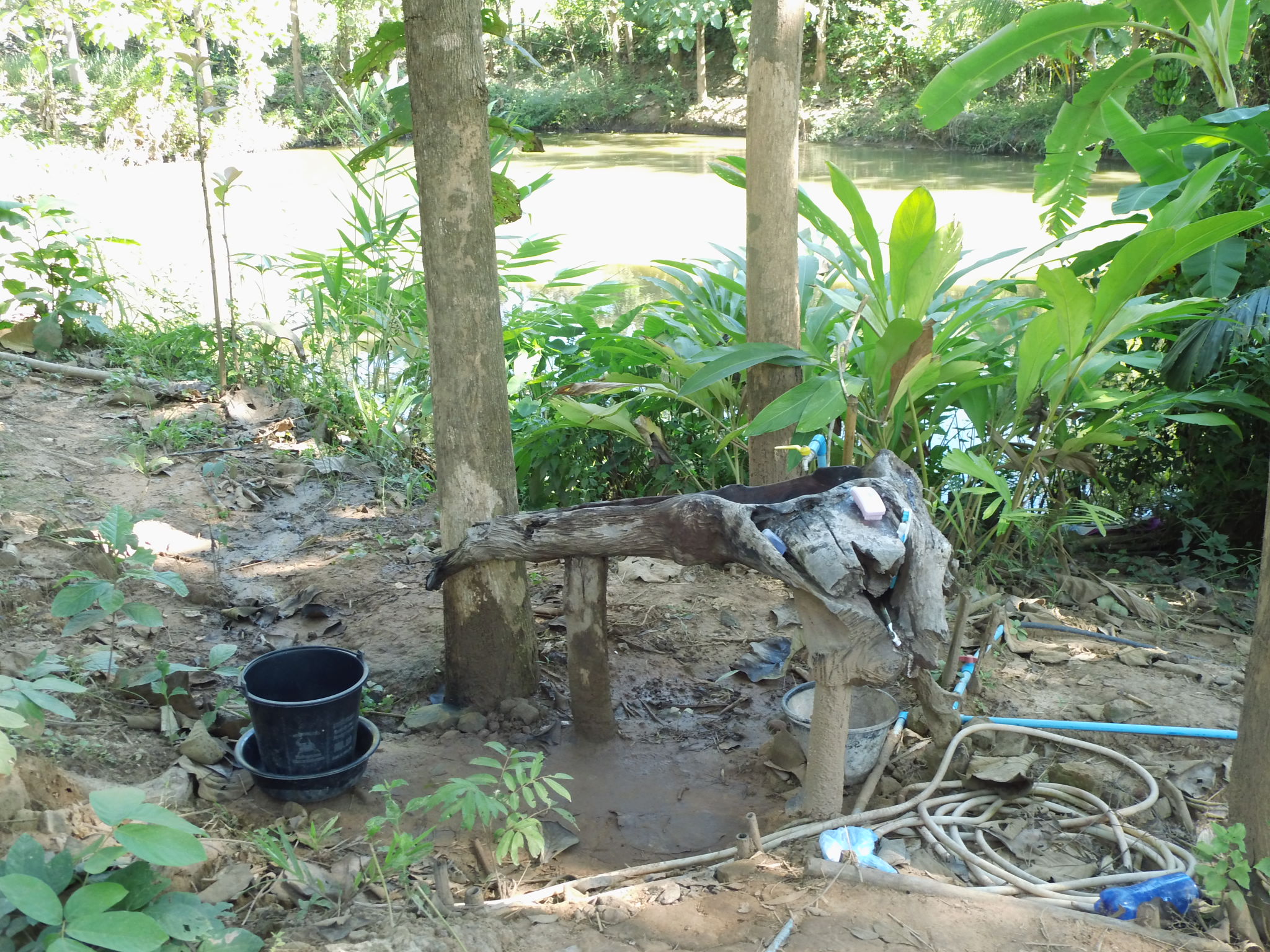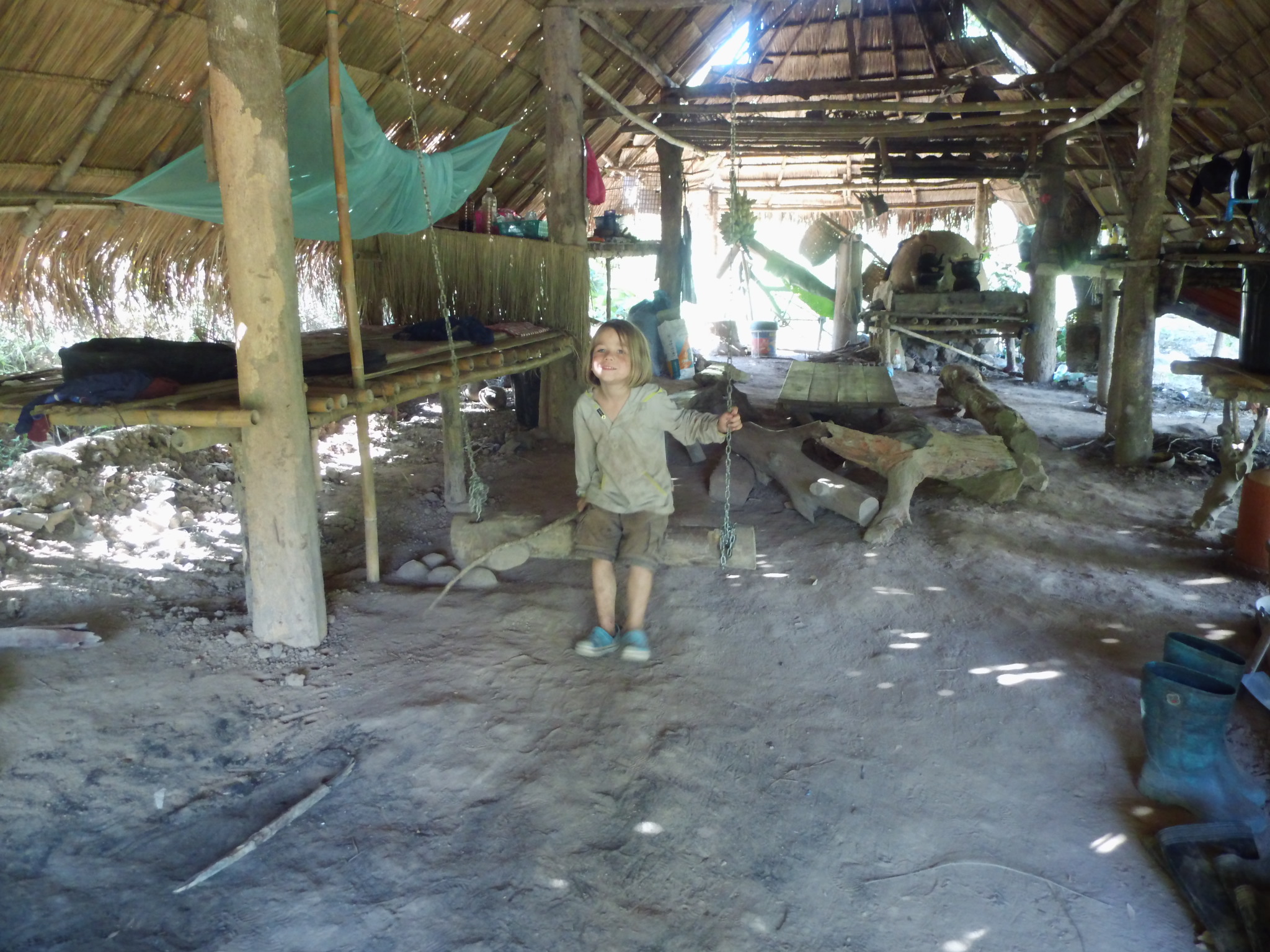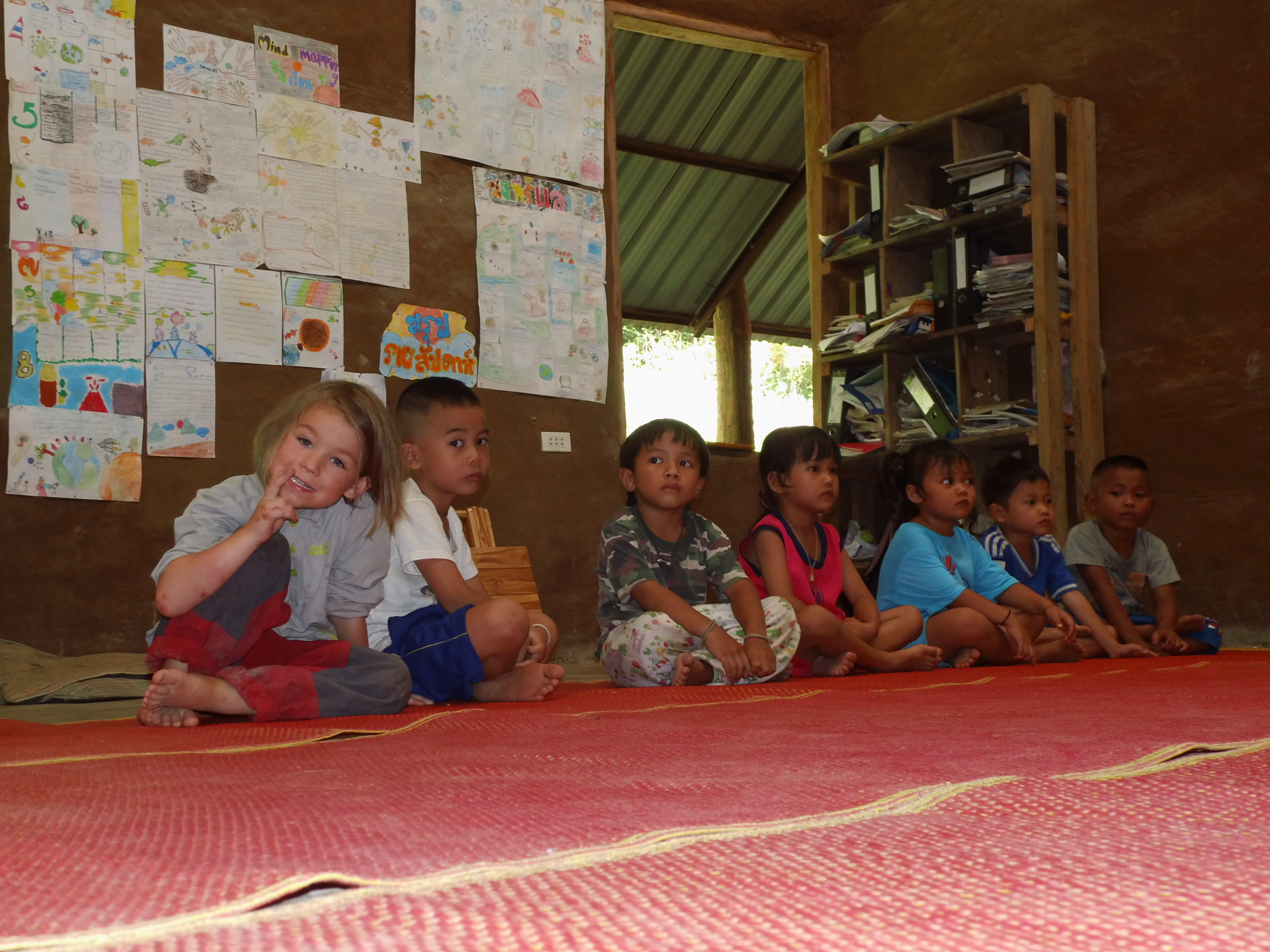 Wir besuchen eine Schule im nahegelegenen Dorf und verbringen einen fantastischen Tag dort. Auf dem Weg dorthin machen wir Halt am Fluss und Jannik planscht, taucht und buddelt im Matsch, kurzum, er ist grad das gluecklichste Kind der Welt. Nur fünf Gehminuten entfernt erreichen wir das kleine Dorf im Dschungel. Die Schule im Dorf ist von den Dorfbewohnern selbst errichtet wurden und ermöglicht den dort lebenden Kindern eine Schulbildung bis zur sechsten Klasse, die ihnen sonst vermutlich nur schwer möglich wäre. Die Kinder lernen dort frei und unterstützen sich in kleinen Lerngruppen gegenseitig. Wir essen gemeinsam mit den Kindern, Jannik genießt in erster Linie den angrenzenden Kindergarten und das Spielzeug dort. Einige Tage später besuche ich die Schule mit Jannik ein weiteres Mal, um ein ausgiebiges Gespräch mit dem Mönch zu führen, der die Schule unterstützt. Wir unterhalten uns über die Unterschiede der Schulsysteme und ich Frage, wie ich die Schule unterstützen könnte. Er ist sehr bescheiden und lehnt meine Hilfe indirekt ab. Es gibt kein Spenden Konto oder ähnliches und dennoch finanziert sich die Schule allein von Spenden aus der Region. Wenn du also einmal die Sahai Nan Farm besucht und du oder dein Umfeld noch ein wenig Geld übrig hat, dann wäre genau das der richtige Ort, um etwas gutes zu tun. Sandot, der Betreiber der Sahai Nan Farm plant eine künftige Zusammenarbeit mit der Schule und möchte die Schulkinder zu Projektwochen einladen.