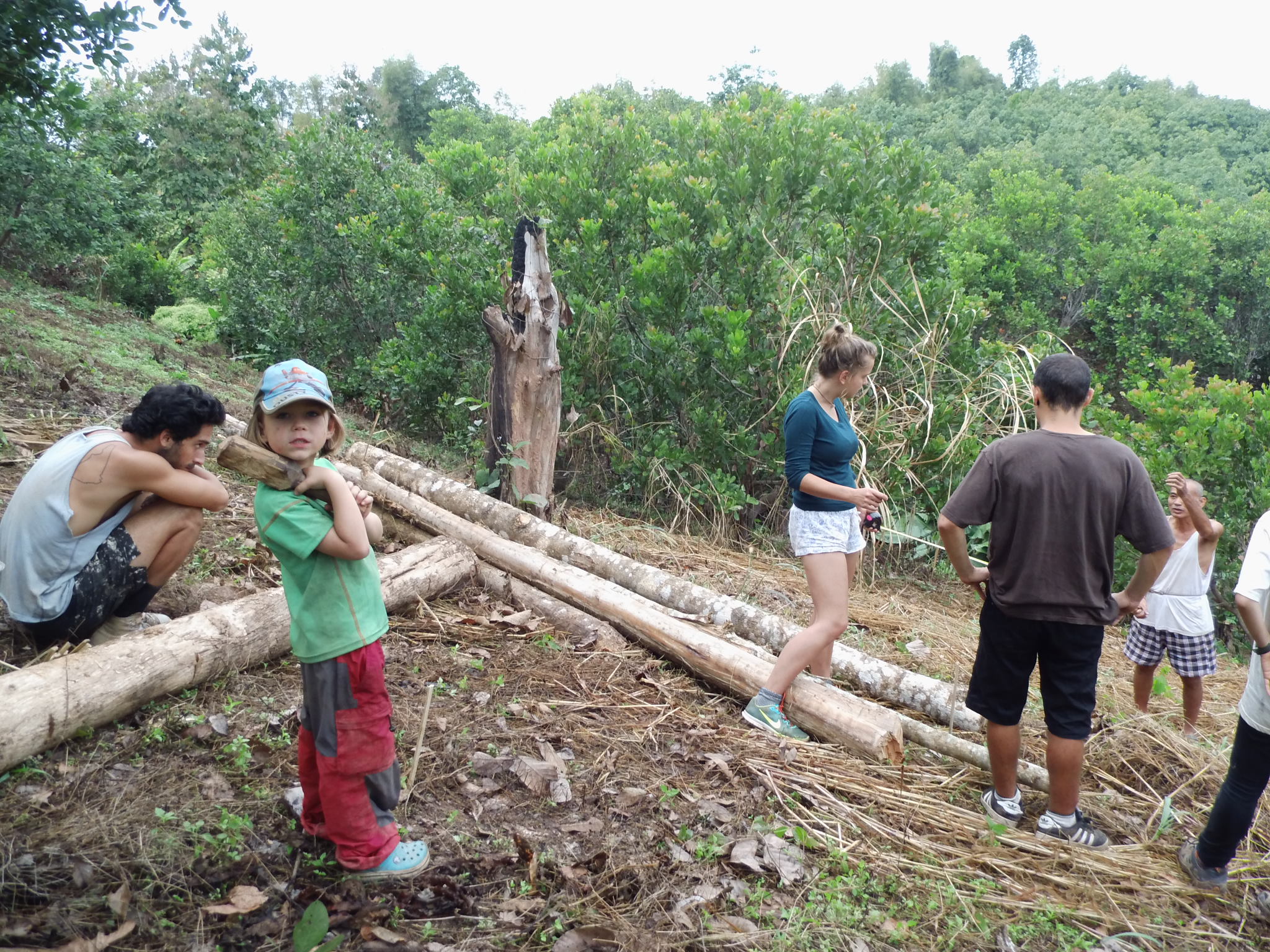 Jannik bekommt hier in der Sahai Nan Farm seine erste eigene Machete und versucht sich damit so gut es geht einzubringen. Sofern er nicht müde ist, geht er außerordentlich sicher damit um und hackt das Feuerholz als hätte er nie etwas anderes gemacht. Er ist so stolz, jetzt auch ein Teil der arbeitenden Gemeinschaft zu sein und wir ritzen seinen Namen in den Griff. Er träumt davon auch bald mal den großen Bambus zu schlagen und gemeinsam mit den Männern den Hügel hoch zu schleppen. “Wenn ich groß bin und mein eigene Farm habe, dann dürfen alle Kinder eine Machete haben und ich pass auf, dass sie sich nicht verletzen”, solche und ähnliche Sätze höre ich nach jeder Gute-Nacht-Geschichte. Ich bin froh, dass die Sahai Nan Farm so einen positiven Einfluss auf ihn hat.