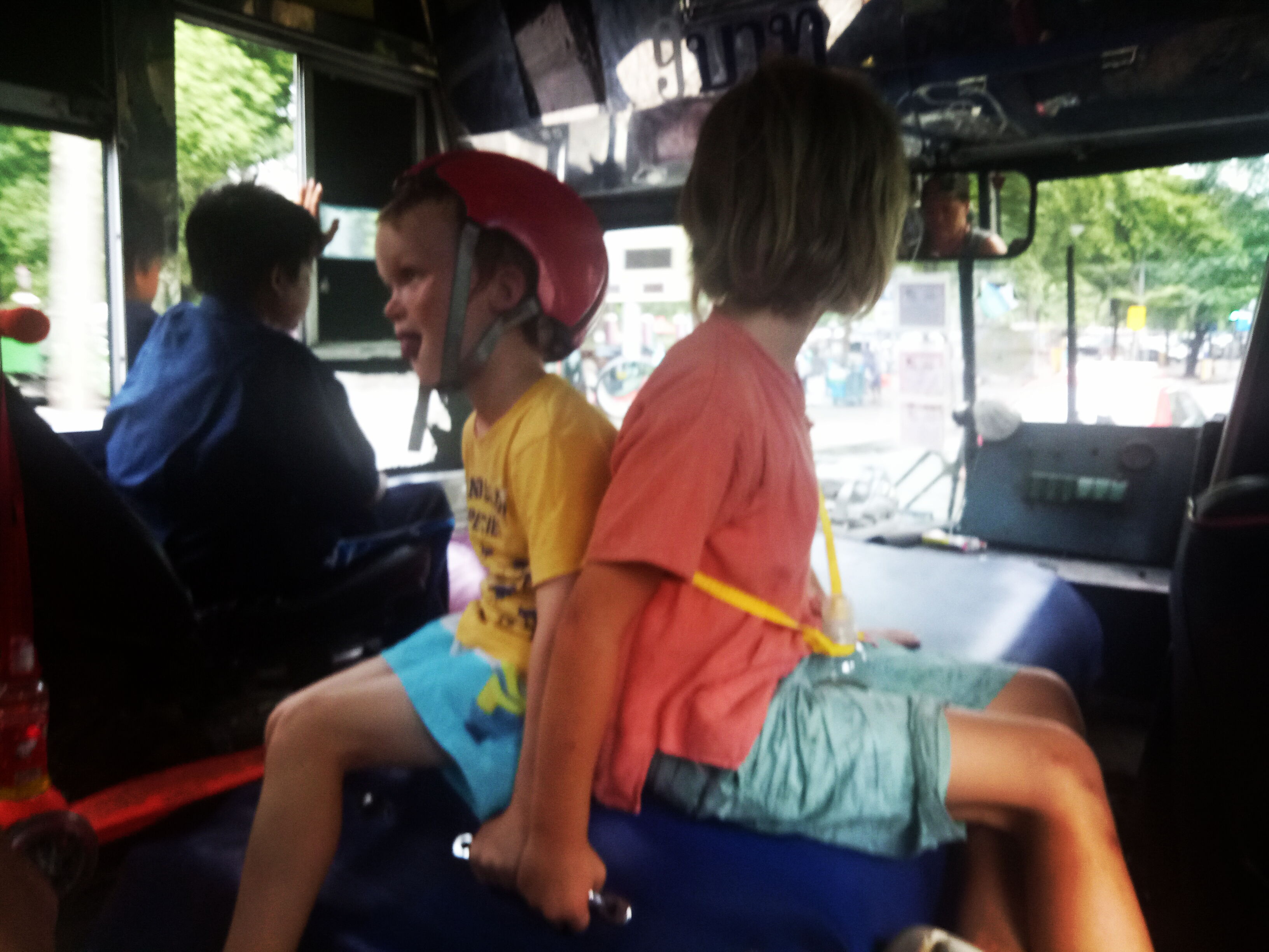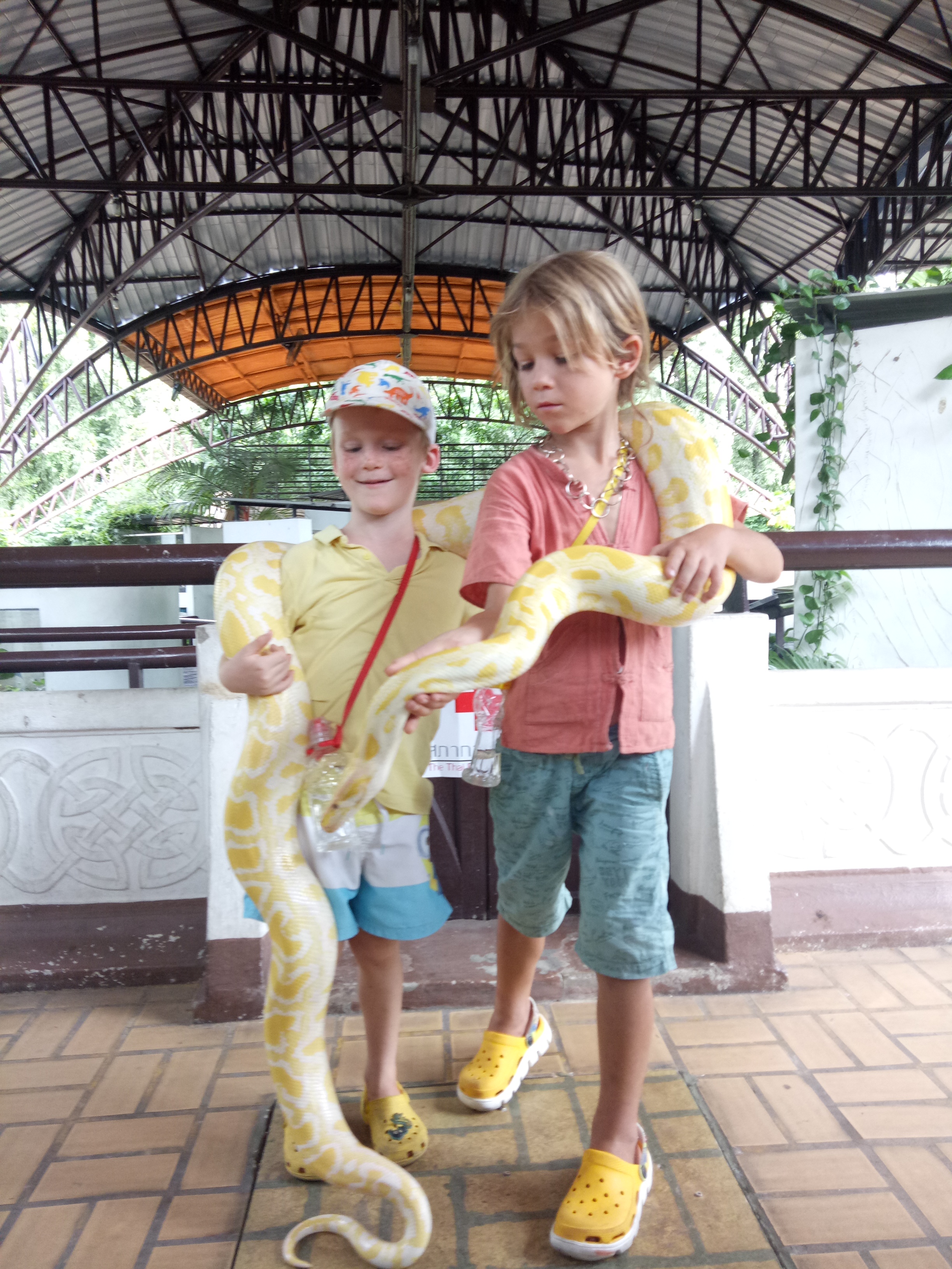 Als meine Arbiet in Bangkok beginnt, treffen wir auf einen sensiblen und ruhigen Jungen, dem plötzlich Jannik als selbstbewusster Wirbelwind gegenüber steht. Ich glaube, zu dem Zeitpunkt können die beiden Jungs nicht unterschiedlicher sein. Dadurch ergaben sich viele Hürden in der Zusammenführung. Beide sind Einzelkinder, sind es gewohnt die volle Aufmerksamkeit zu bekommen und plötzlich steckt man sie zusammen, 12 Stunden täglich. Sie müssen sich arrangieren, gemeinsame Spiele finden, eine gemeinsame Sprache sprechen, soziale Kompetenzen ausbalancieren. Ich merkte schnell, dass ich die Situation entzerren muss und begann die Tage fast komplet im Freien zu verbringen. Statt den gewohnten Taxifahrten für Shaye zu Indoorspielplätzen oder anderen Aktivitäten, erschuf ich ein Programm mit mehr Abenteuer. Es tat mir in der Seele weh, diesen kleinen Jungen quer durch Bangkok zu schleppen in den Bussen der Einheimischen mit langen Wartezeiten und langen Wegen. Aber es war eine gute Richtung und ein Grundstein für mehr Fröhlichkeit. Wir verbrachten die Tage in Parks, trafen auf viele andere Kinder und versuchten Struktur in sein neues Leben zu bringen. Die Idee dahinter war aber vor allem die beiden Jungs durch gemeinsame Erlebnisse miteinander zu verbinden. Und natürlich einen Alltag zu erschaffen, der Shaye langsam aus seinem Schneckenhaus lockte. Mir war klar, dass ich keine fundierte Ausbildung habe, um auf ganzer Ebene  zu wirken.